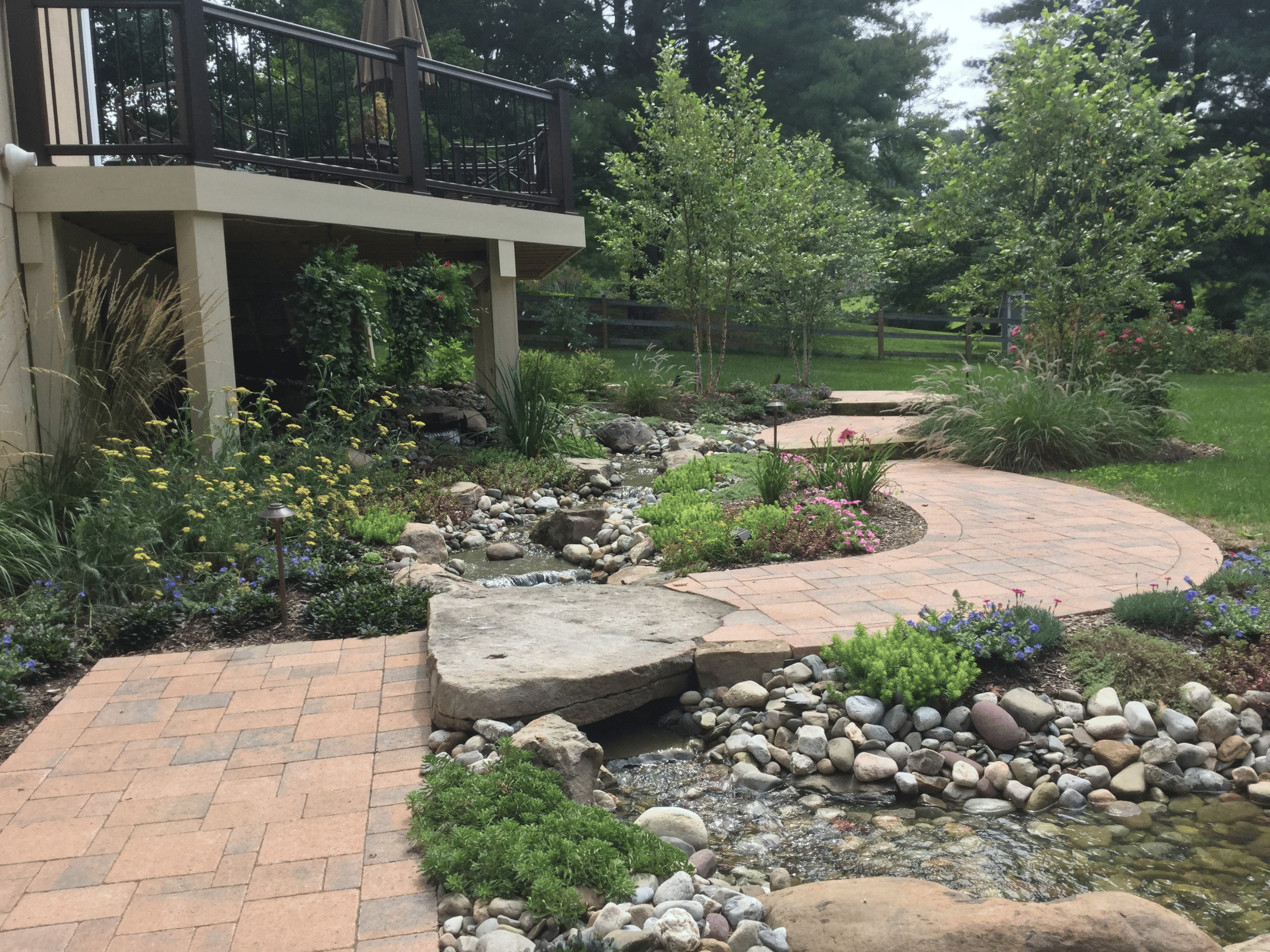 Our team is passionate about transforming your ideas into stunning reality, creating water elements that enhance the tranquility and elegance of your surroundings. From soothing garden fountains and cascading waterfalls to modern pondless designs and interactive water walls, we tailor each feature to fit your unique style and landscape. With a focus on quality craftsmanship and innovative design, eos Outdoor Services ensures that your custom water feature becomes a focal point of relaxation and enjoyment. Let us help you bring water’s soothing sounds and visual appeal to your outdoor living space, turning your vision into a captivating reality.